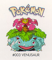 Pokedex Bulbasaur (Fushigidane) Type: Grass / Poison Evolves into: Ivysaur (Fushigizou) at Lv 16 Venusaur (Fushigibana) at Lv 32 002. Ivysaur (Fushigizou) Type: Grass / Poison Evolves into: Venusaur (Fushigibana) at Lv 32 003. Venusaur (Fushigibana) Type: Grass / Poison 004. Charmander (Hitokage) Type: Fire Evolves into: Charmeleon (Lizard) at Lv 16 Charizard (Lizardon) at Lv 36 005. Charmeleon (Lizard) Type: Fire Evolves into: Charizard (Lizardon) at Lv 36 006. Charizard (Lizardon) Type: Fire 007. Squirtle (Zenigame) Type: Water Evolves into: War Turtle (Kameru) at Lv 16 Blastoise (Kamex) at Lv 36 008. War Turtle (Kameru) Type: Water Evolves into: Blastoise (Kamex) at Lv 36 009. Blastoise (Kamekkusu) Type: Water 010. Caterpie Type: Bug Evolves into: Metapod (Transel) at Lv 7 Butterfree at Lv 10 011. Metapod (Transel) Type: Bug Evolves into: Butterfree at Lv 10 012. Butterfree Type: Bug 013. Weedle (Beedle) Type: Bug / Poison Evolves into: Kocoon at Lv 7 Beedrill (Spear) at Lv 10 014. Kocoon Type: Bug / Poison Evolves into: Beedrill (Spear) at Lv 10 015. Beedrill (Spear) Type: Bug / Poison 016. Pidgey (Poppo) Type: Normal / Flying Evolves into: Pidgeotto (Pigeon) at Lv 18 Pidgeot at Lv 36 017. Pidgeotto (Pigeon) Type: Normal / Flying Evolves into: Pidgeot at Lv 36 018. Pidgeot Type: Normal / Flying 019. Rattata (Kuratta) Type: Normal Evolves into: Raticate (Ratta) at Lv 20 020. Raticate (Ratta) Type: Normal 021. Spearow (Onisuzume) Type: Normal / Flying Evolves into: Fearow (Onidrill) at Lv 20 022. Fearow (Onidrill) Type: Normal / Flying 023. Ekans (Arbo) Type: Poison Evolves into: Arbok at Lv 22 024. Arbok Type: Poison 025. Pikachu Type: Electric Evolves into: Raichu when Electric Stone is used 026. Raichu Type: Electric 027. Sandshrew (Sand) Type: Ground Evolves into: Sandslash (Sandpan) at Lv 22 028. Sandslash (Sandpan) Type: Ground 029. Nidoran F Type: Ground Evolves into: Nidorina at Lv 16 Nidoqueen when Moon Stone is used 030. Nidorina Type: Ground Evolves into: Nidoqueen when Moon Stone is used031. Nidoqueen Type: Poison / Ground 032. Nidoran M Type: Poison Evolves into: Nidorino at Lv 16 Nidoking when Moon Stone is used 033. Nidorino Type: Poison Evolves into: Nidoking when Moon Stone is used 034. Nidoking Type: Poison 035. Aria (Pippy) Type: Normal Evolves into: Ariala (Pixie) when Moon Stone is used 036. Ariala (Pixie) Type: Normal 037. Foxfire (Rokon) Type: Fire Evolves into: Nine Tales (Kyukon) when Fire Stone is used 038. Nine Tales (Kyukon) Type: Fire 039. Jigglypuff (Purin) Type: Normal Evolves into: Wigglypuff (Pukurin) when Moon Stone is used 040. Wigglypuff (Pukurin) Type: Normal 041. Zubat Type: Poison / Air Evolves into: Golbat at Lv 22 042. Golbat Type: Poison / Air 043. Oddish (Nazonokusa) Type: Grass / Poison Evolves into: Gloom (Flower) at Lv 21 Vileplume (Lafressia) when Leaf Stone is used 044. Gloom (Flower) Type: Grass / Poison Evolves into: Vileplume (Lafressia) when Leaf Stone is used 045. Vileplume (Lafressia) Type: Grass / Poison 046. Paras Type: Bug / Grass Evolves into: Parasect at Lv 24 047. Parasect Type: Bug / Grass 048. Venomat (Konpan) Type: Poison / Bug Evolves into: Venomoth (Morufon) at Lv 31 049. Venomoth (Morufon) Type: Poison / Bug 050. Diglett (Digda) Type: Ground Evolves into: Dugtrio at Lv 26 051. Dugtrio Type: Ground 052. Meowth (Nyarsu) Type: Normal Evolves into: Persian at Lv 28 053. Persian Type: Normal 054. Psyduck (Goduck) Type: Water Evolves into: Golduck at Lv 37 055. Golduck Type: Water / Psychic 056. Mankey Type: Fighting Evolves into: Primeape (Ocorizaru) at Lv 28 057. Primeape (Ocorizaru) Type: Fighting 058. Growlithe (Gardy) Type: Fire Evolves into: Blaze (Windy) when Fire Stone is used 059. Arcanine (Windy) Type: Fire 060. Poliwag (Nyoromo) Type: Water Evolves into: Poliwhirl (Nyorozo) Poliwrath (Nyorobon) when Water Stone is used 061. Poliwhirl (Nyorozo) Type: Water Evolves into: Poliwrath (Nyorobon) when Water Stone is used 062. Poliwrath (Nyorobon) Type: Water / Fighting 063. Hocus (Casey) Type: Psychic 064. Pocus (Yun Geller) Type: Psychic Evolves into: Alakazam (Foodin) after trading 065. Alakazam (Foodin) Type: Psychic 066. Kara-tee (Wanriki) Type: Fighting 067. Kung-Foo (Gorriki) Type: Fighting Evolves into: Ju-doh (Kairiki) after trading 068. Ju-doh (Kairiki) Type: Fighting 069. Bell Sprout (Madatsubomi) Type: Grass / Poison Evolves into: Victreebell (Wutsubotto) when Leaf Stone is used 070. Weepinbell (Wutsudon) Type: Grass / Poison Evolves into: Victreebell (Wutsubotto) when Leaf Stone is used 071. Victreebell (Wutsubotto) Type: Grass / Poison 072. Jilly (Menokurage) Type: Water / Poison Evolves into: Man O'War (Dokukurage) at Lv 30 073. Man O'War (Dokukurage) Type: Water / Poison 074. Geodude (Ishitsubute) Type: Rock / Ground Evolves into: Graveler (Gororn) at Lv 25 075. Graveler (Gororn) Type: Rock / Ground Evolves into: Golem (Gorornya) after trading 076. Golem (Gorornya) Type: Rock / Ground 077. Ponyta Type: Fire Evolves into: Gallop at Lv 40 078. Gallop Type: Fire 079. Slowmo (Yadon) Type: Water / Psychic Evolves into: Slowbro (Yadoran) at Lv 37 080. Slowbro (Yadoran) Type: Water / Psychic 081. Coil Type: Electric Evolves into: Recoil 082. Recoil Type: Electric 083. Farfetch'd Type: Normal / Flying 084. Dodo Type: Normal / Flying Evolves into: Dodrio at Lv 31 085. Dodrio Type: Normal / Flying 086. Seel (Pauwau) Type: Water / Ice Evolves into: Manaty (Jugon) at Lv 34 087. Manaty (Jugon) Type: Water / Ice 088. Grimmer (Betobetar) Type: Poison 089. Mulk (Betobeton) Type: Poison 090. Shellder Type: Water / Ice Evolves into: Cloyster (Parushen) when Water Stone is used091. Cloyster (Parushen) Type: Water / Ice 092. Spirit (Ghos) Type: Ghost / Poison Evolves into: Specter (Ghost) at Lv 25 093. Specter (Ghost) Type: Ghost / Poison Evolves into: Phantom (Genger) after trading 094. Phantom (Genger) Type: Ghost / Poison 095. Onyx (Iwarku) Type: Stone / Rock 096. Drowsee (Sleep) Type: Psychic Evolves into: Hypno (Sleeper) a
